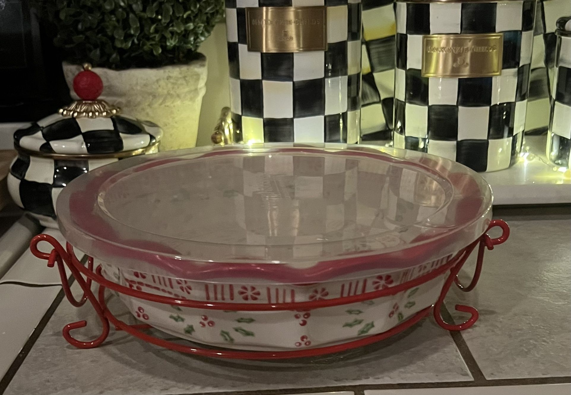 New retired hard to find. Pie baking dish with wire rack & lid from Temp-tations Pattern is Angel 9 inch diameter $25 Porterville location