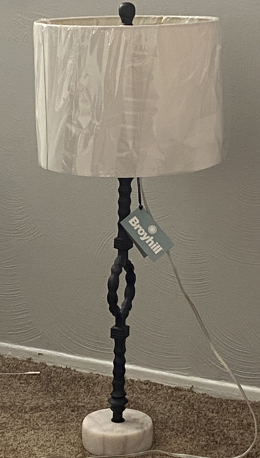 Broyhill lamps brand new with tag still on. The only issue is the lamp shades. One is missing and the other one is damaged. New lampshades can be purchased to match your decor. $75 for both.