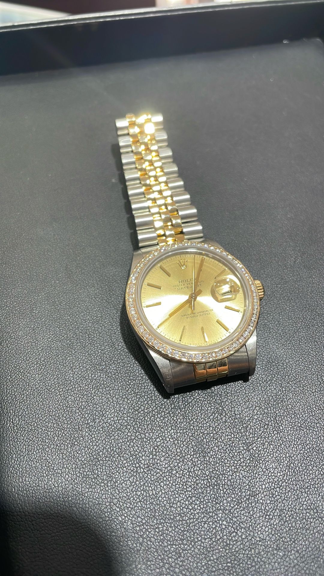 Aftermarket diamond bezel, champagne dial, beautiful condition. https://offerup.com/redirect/?o=QTFKZXdlbHJ5YW5kTG9hbi5jb20=