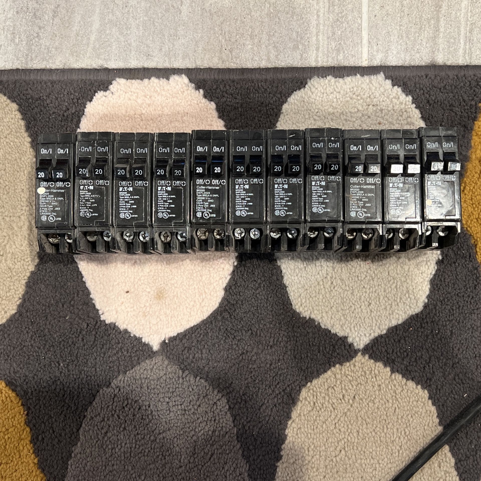 11x 20 amp Eaton tandem breakers BR2020 25.0 each