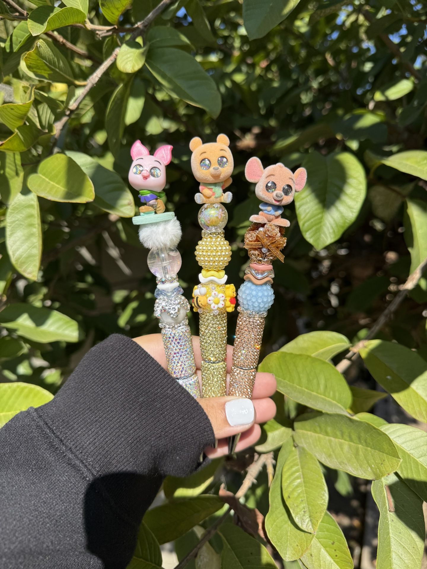Pooh bear , piglet, roo Disney doorables . $40 for all 3 . $15 each Christmas season Beaded pens
