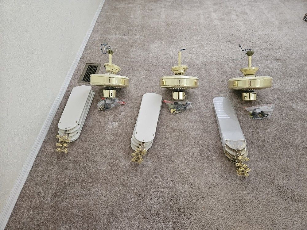 Ceiling Fans. 3 For 65 Dollars. 52 Inch No Light Kits. One With Clear Blades.