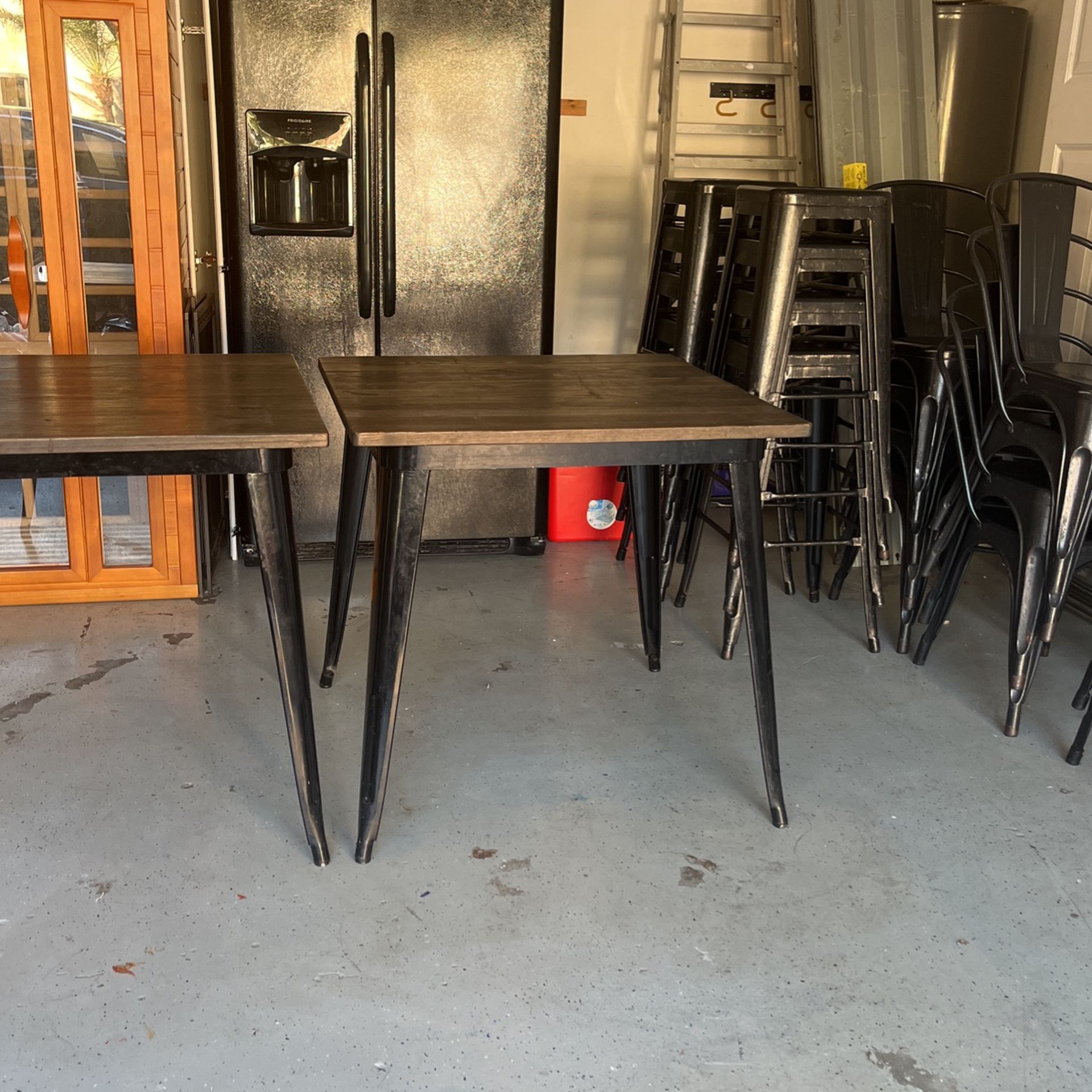 Rustic great condition 10 bar stools 2 wood top tables and 8 chairs