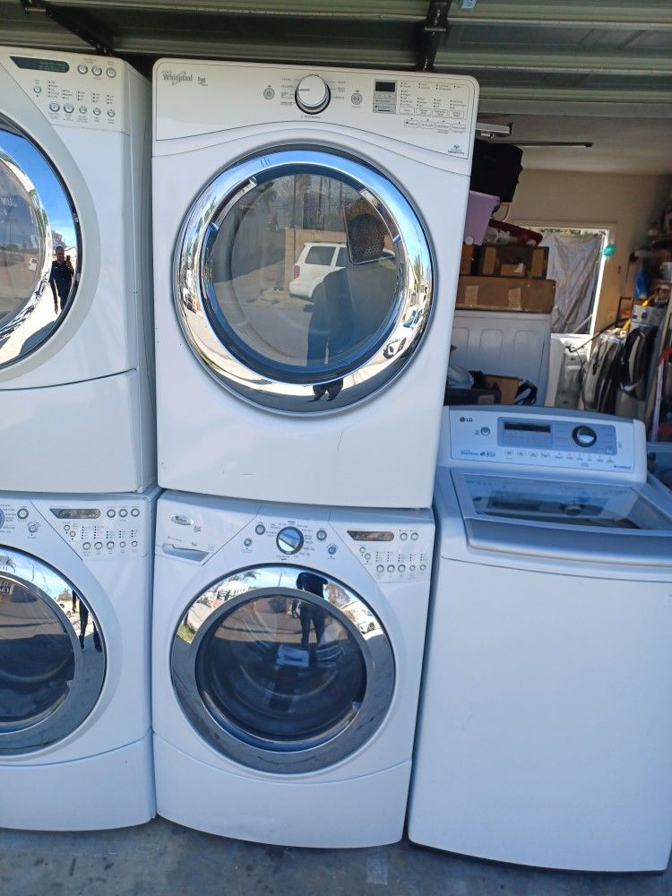 Whirlpool Duet Stackable Washer And Gas Dryer Excellent working condition Heavy duty W27 D31.5 H76 Washer 4.5 cu ft Dryer 7.4 cu ft 3 months warranty Parts and labor only I can accommodate delivery within the area