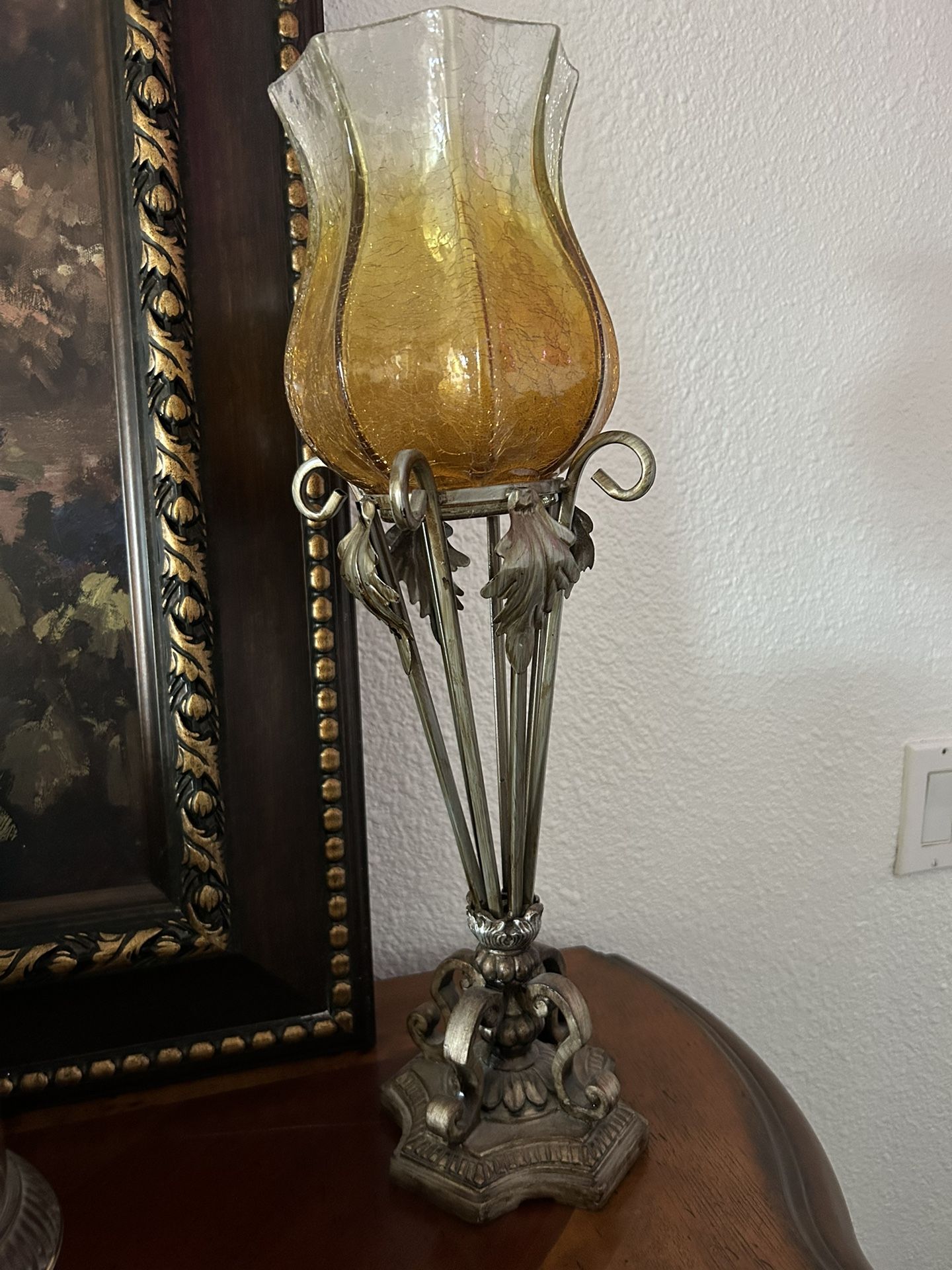 2 glass holders with metal stands. 21 inches and the other 29 inches