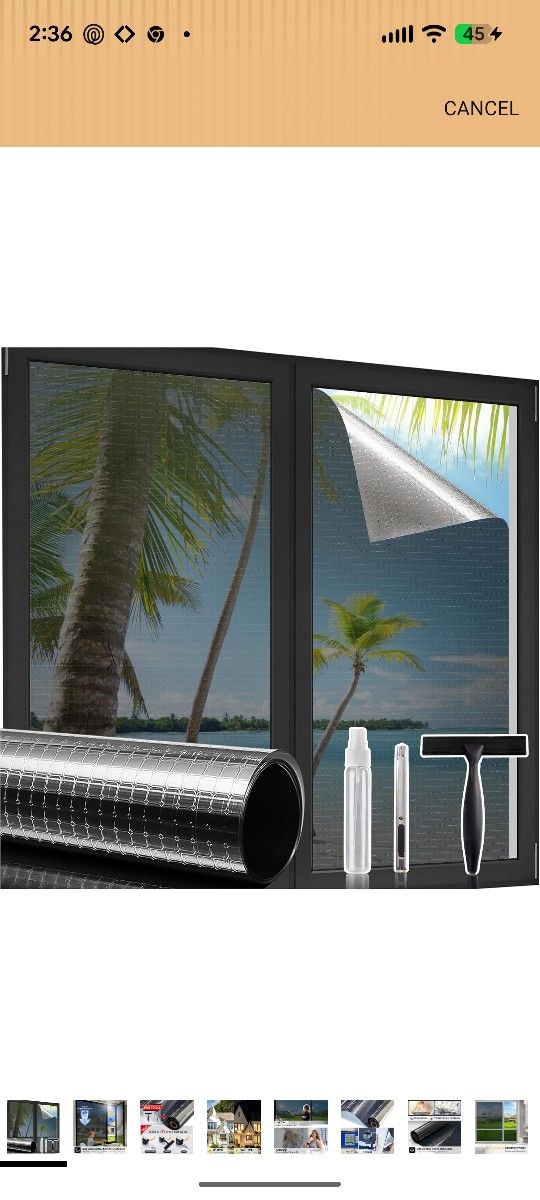 Beautysaid One Way Privacy Window Film See Out Not in Sun Blocking Home Window Tint Reflective Mirror Sun Blocker Anti UV Static Cling Window Covering for House(Tool,35.4 x 78.7 in) New in package Originally $40