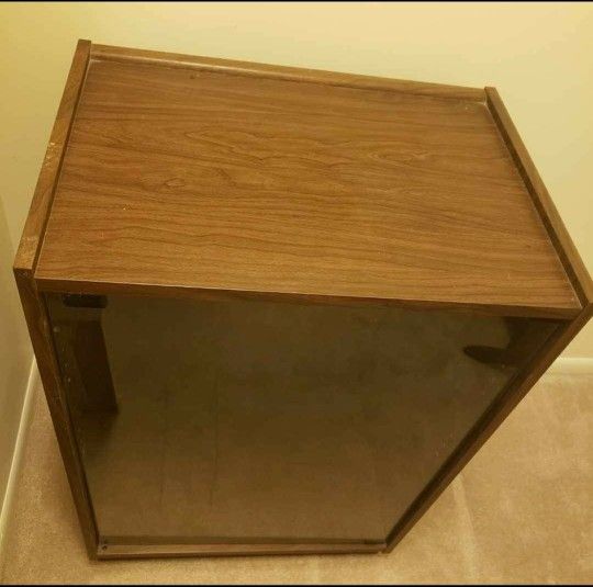 Media Console Stand Wood With Glass Front And 2 Shelves