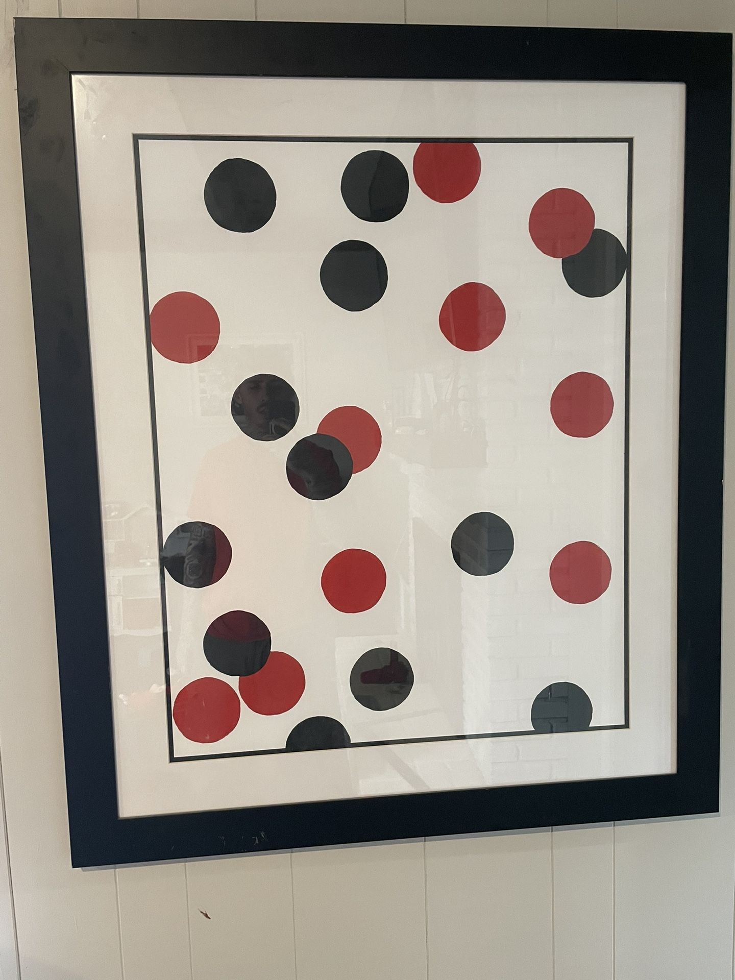2 Artist: Marmont Hill Art Collective (Creative Director: Parvez Taj)( blue ) 2 red and black circles i believe they are ethan allen