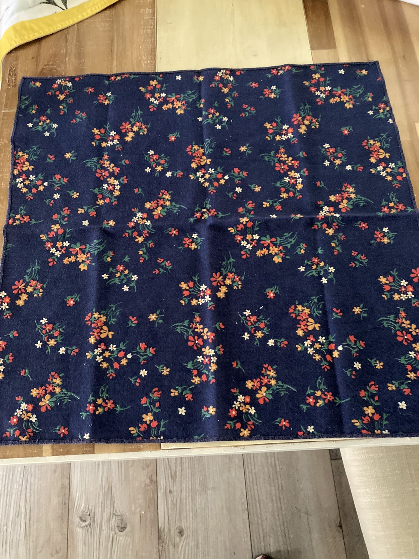 This 16” square handkerchief is made of soft navy blue cotton with a design of scattered colorful petite flowers. It is large enough to use as a neckerchief as well. The fabric is extremely soft to the touch making it easy to carry with you.