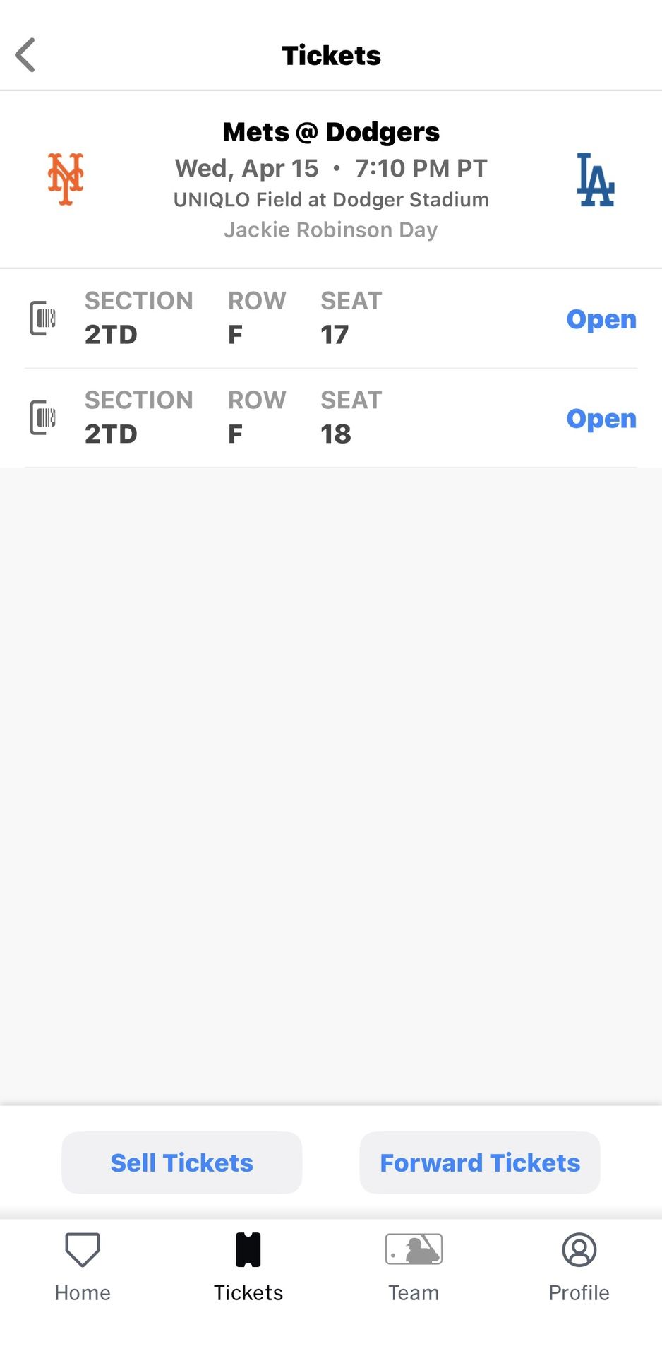 Jackie Robinson Day Jersey giveaway Selling two seats will send through ballpark app. 90 for both