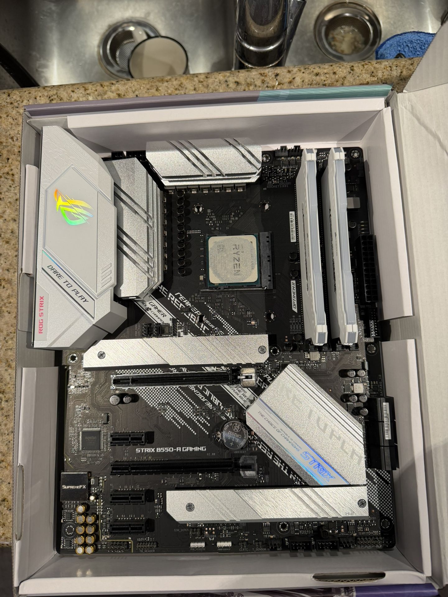Selling separately or $300 as a whole. Ryzen 7 5700X - $180 Corsair DDR4 Vengeance 16GB - $80 ASUS ROG Strix B550-A Gaming Desktop Motherboard - $140 All parts have only been used for less than a year, just upgrading