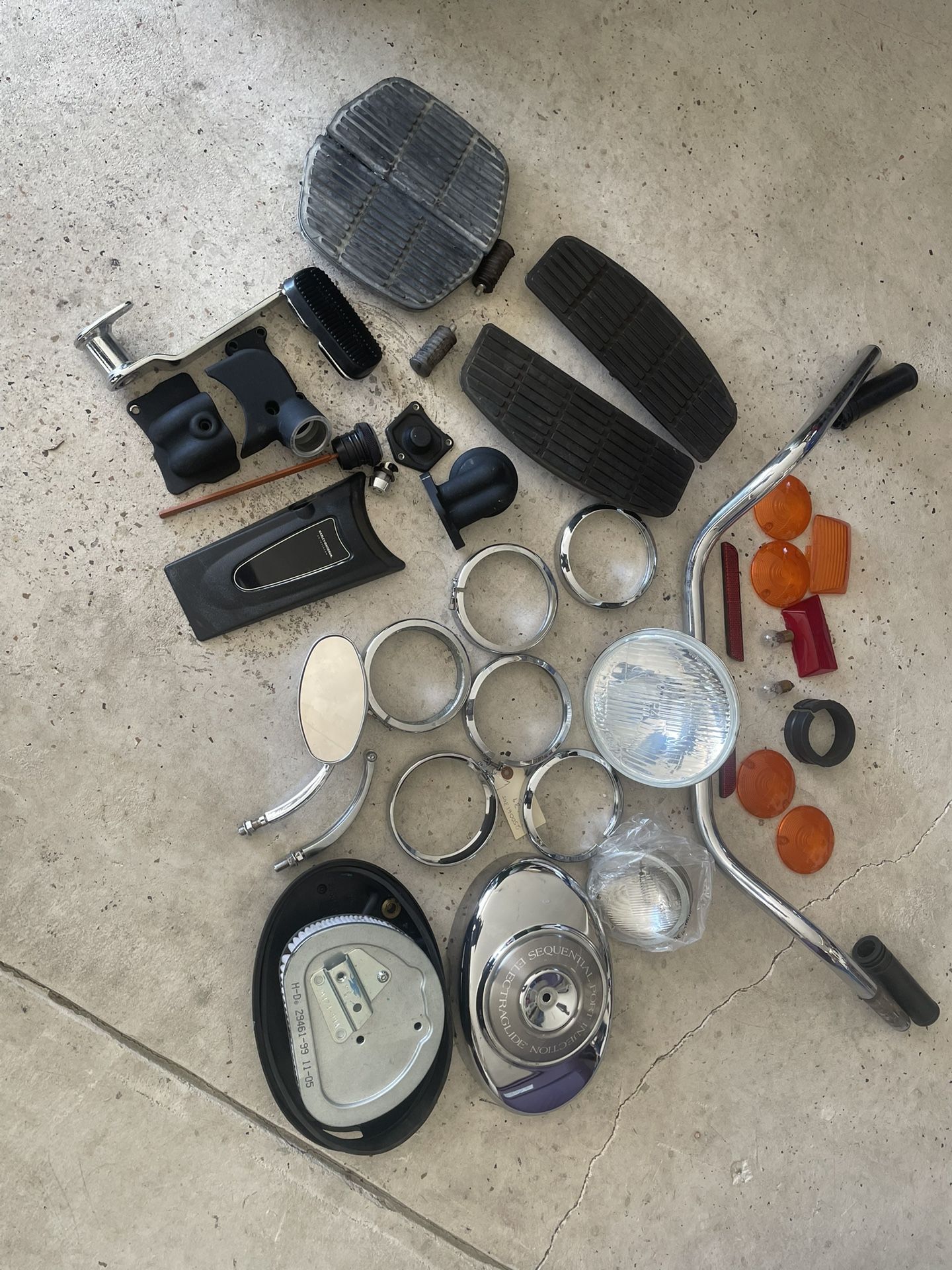 Miscellaneous Harley parts. Foot rest, brake pedal, handle bars light bezels, air filter case and more. All came from 2007 Electricaglide