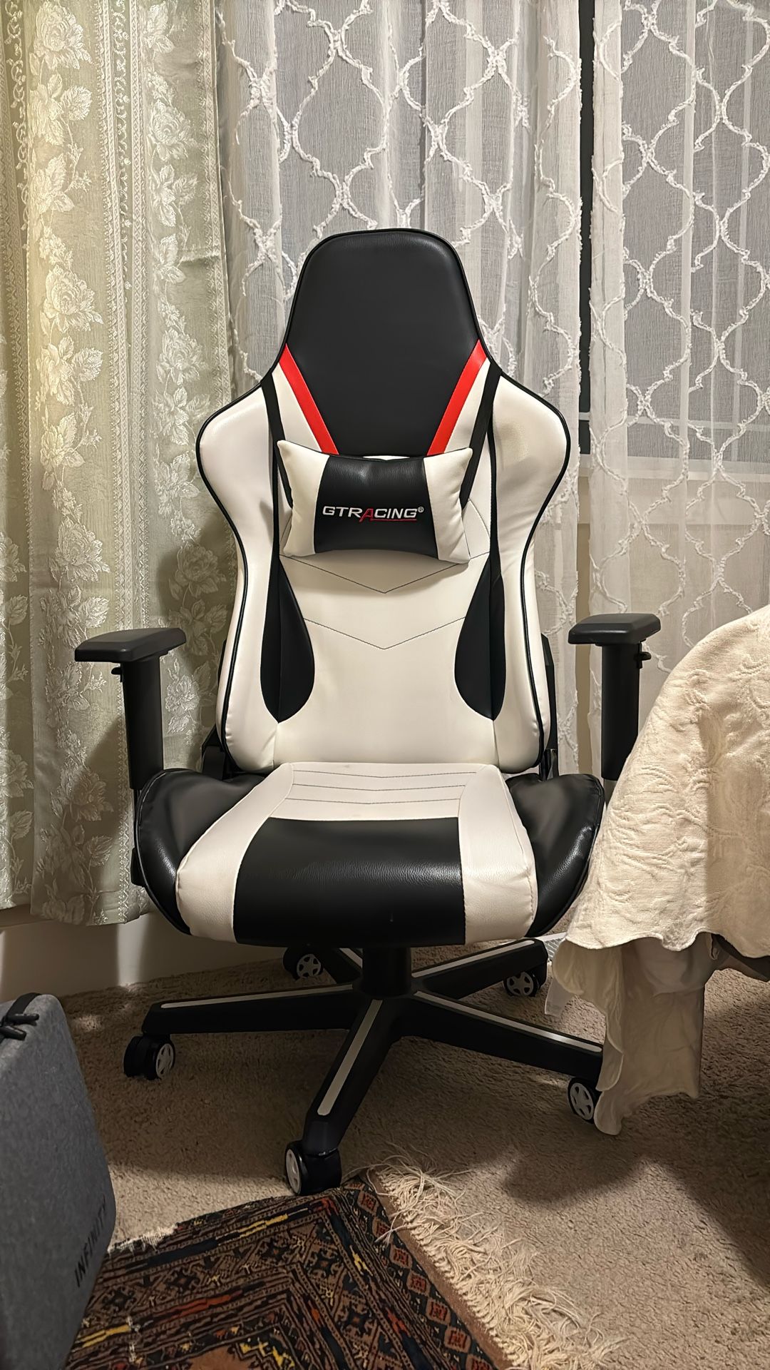 GTRacing gamer chair in good condition. Has small mark on seat (pictured), otherwise clean. Willing to negotiate price!