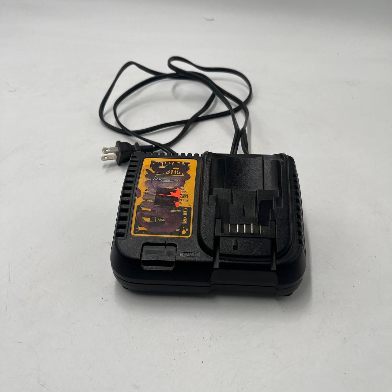 The DEWALT DCB115 12V-20V MAX Li-Ion Fast Battery Charger is a genuine OEM product designed for efficiently charging 12V batteries. This charger is compact and powerful, with a 4A output suitable for quickly replenishing your batteries for your power tools. Made by the trusted brand DEWALT, this charger is reliable and efficient for keeping your tools powered up and ready for use. Perfect for professionals or DIY enthusiasts, this charger is a convenient accessory for any workshop or job site. Genuine DEWALT DCB115 Fast Charger for 12V and 20V MAX Lithium-Ion batteries. Shows cosmetic wear and marker marks on top label (see photos for details). No cracks or structural damage. Cord and plug are in good condition. ✔️ Specifications: • Model: DCB115 • Input: 120V AC • Output: 4.0A Fast Charge • Compatible with DEWALT 12V & 20V MAX Li-Ion batteries • OEM Original DEWALT charger Battery NOT included — charger only.