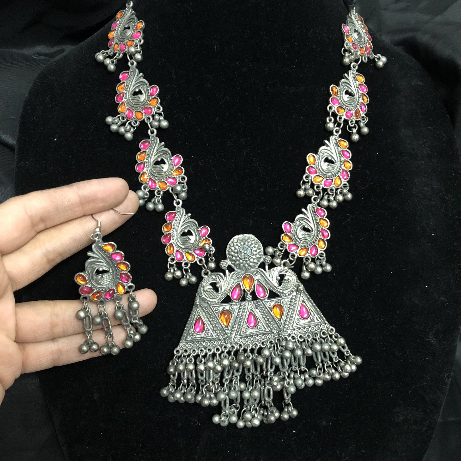 German Silver Indian Bollywood Pakistani Jewellery Rani Har Necklace Mala Colorful Jewelry