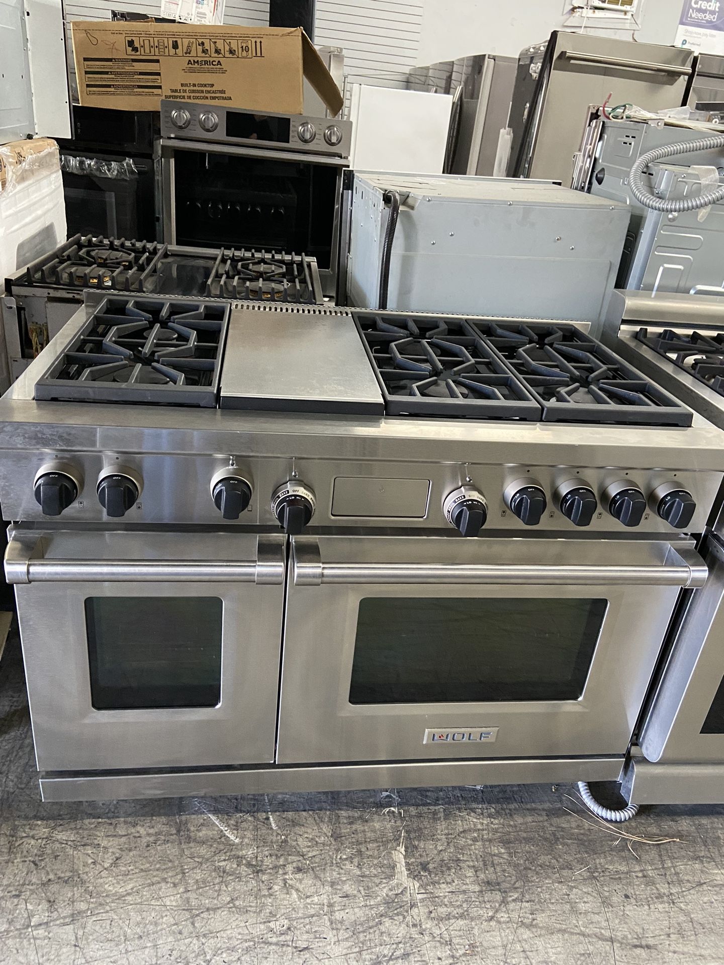 Wolf 48” wide Double oven 6 burners Griddle Dual fuel Delivery drop off Installation available
