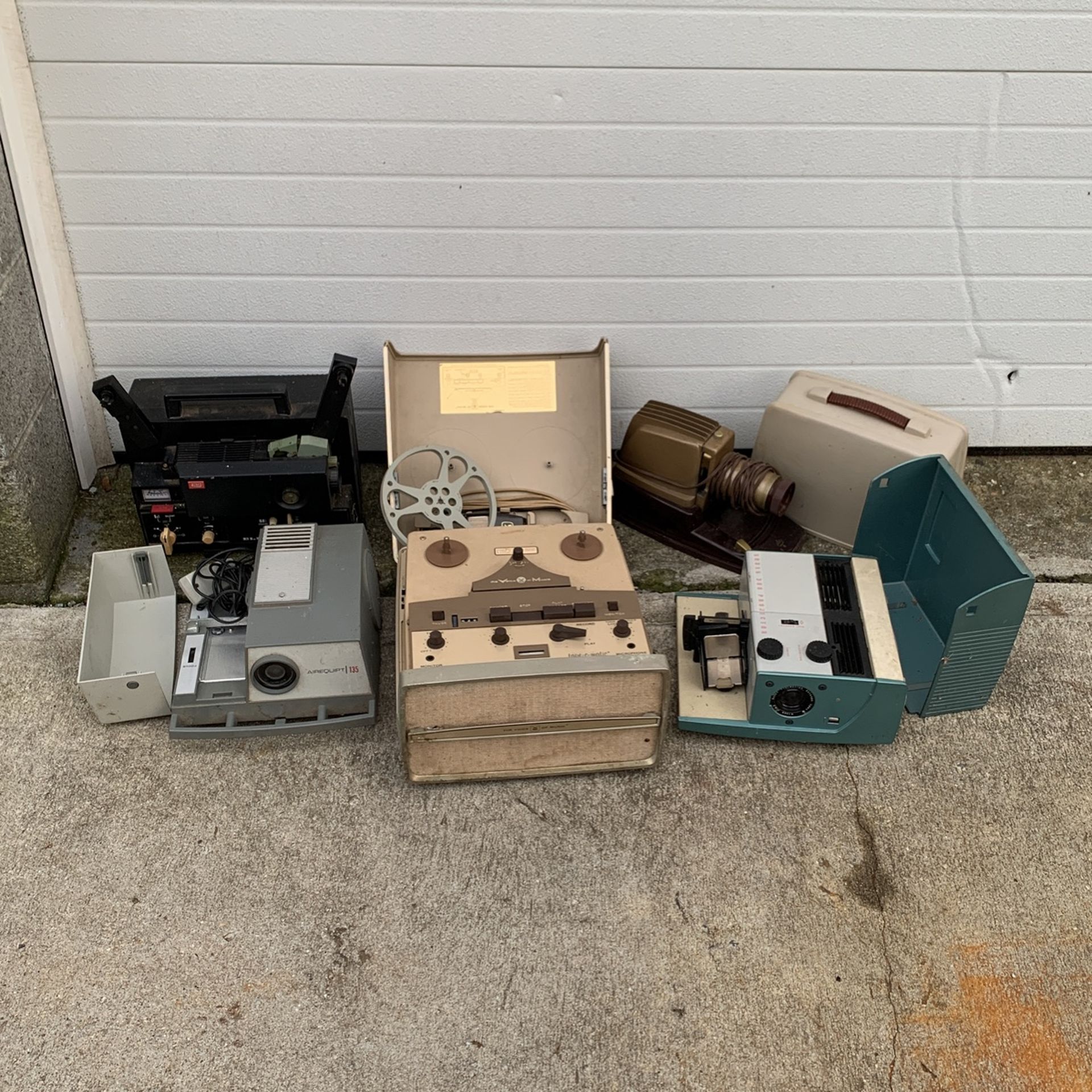 Various slide projector, movie, reel to reel and audio equipment sold as is