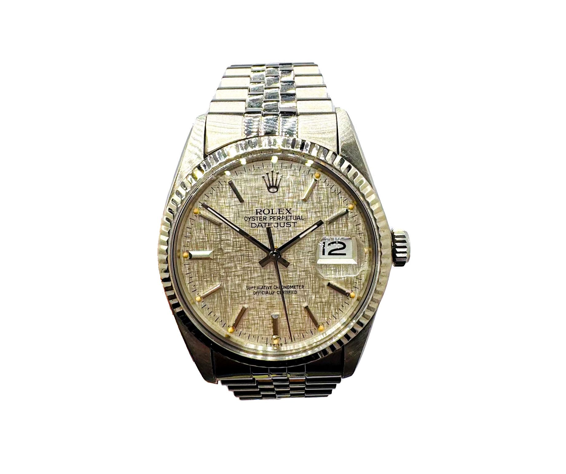 Rolex Datejust Watch Model 16014 Serial number: 738**** Champaign Dial Fluted 18k Gold Besel Stainless Steel Jubilee Band All original Watch Pre-owned, in good condition No box/ No papers