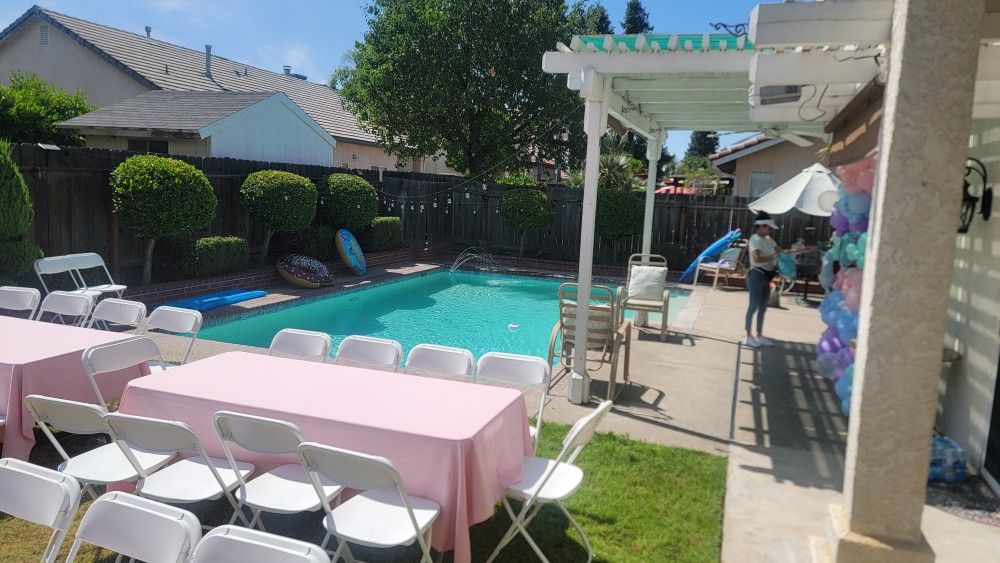 Come cool off, swim and hangout out at our pool! Available 7 days a week all summer long. Also includes amenities such as outdoor kitchen, party... Graduation party prices up to 60 people $40 for 5 people for 1 hour 6 hours minimum from 9:am to 3pm or 4 pm to close We can provide tables and chairs with fee Projector for night time only free Loud Music is ok No wood or metal inside the pool