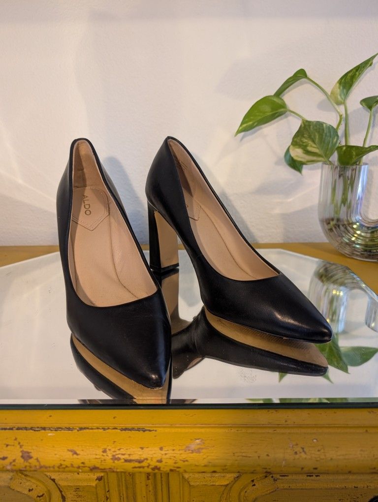 100% real leather Size 8 Originally $100+ block heel Gold accents Aldo- Worn once Heal is straight and bottoms barley worn. Comfortable just too small for me. Please add pickup time when contacting ✨