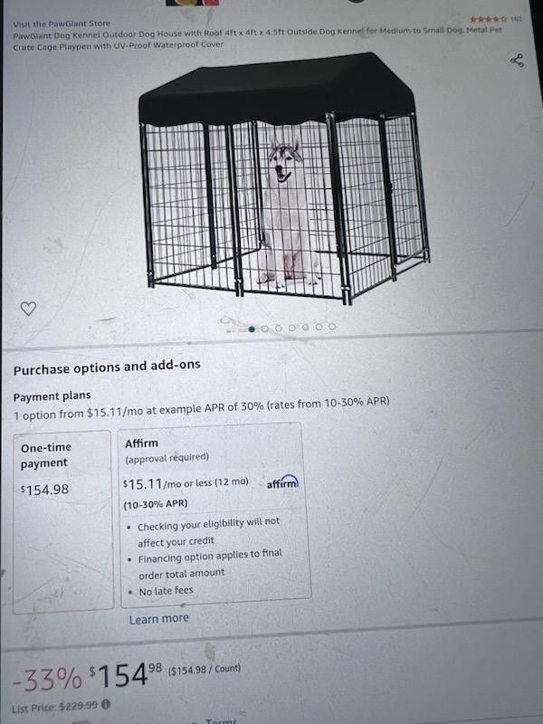 I have this for sell the picture is there of how much it cost me. Asking for $80 dog runner and the kennel 100. Small standard kennels 20