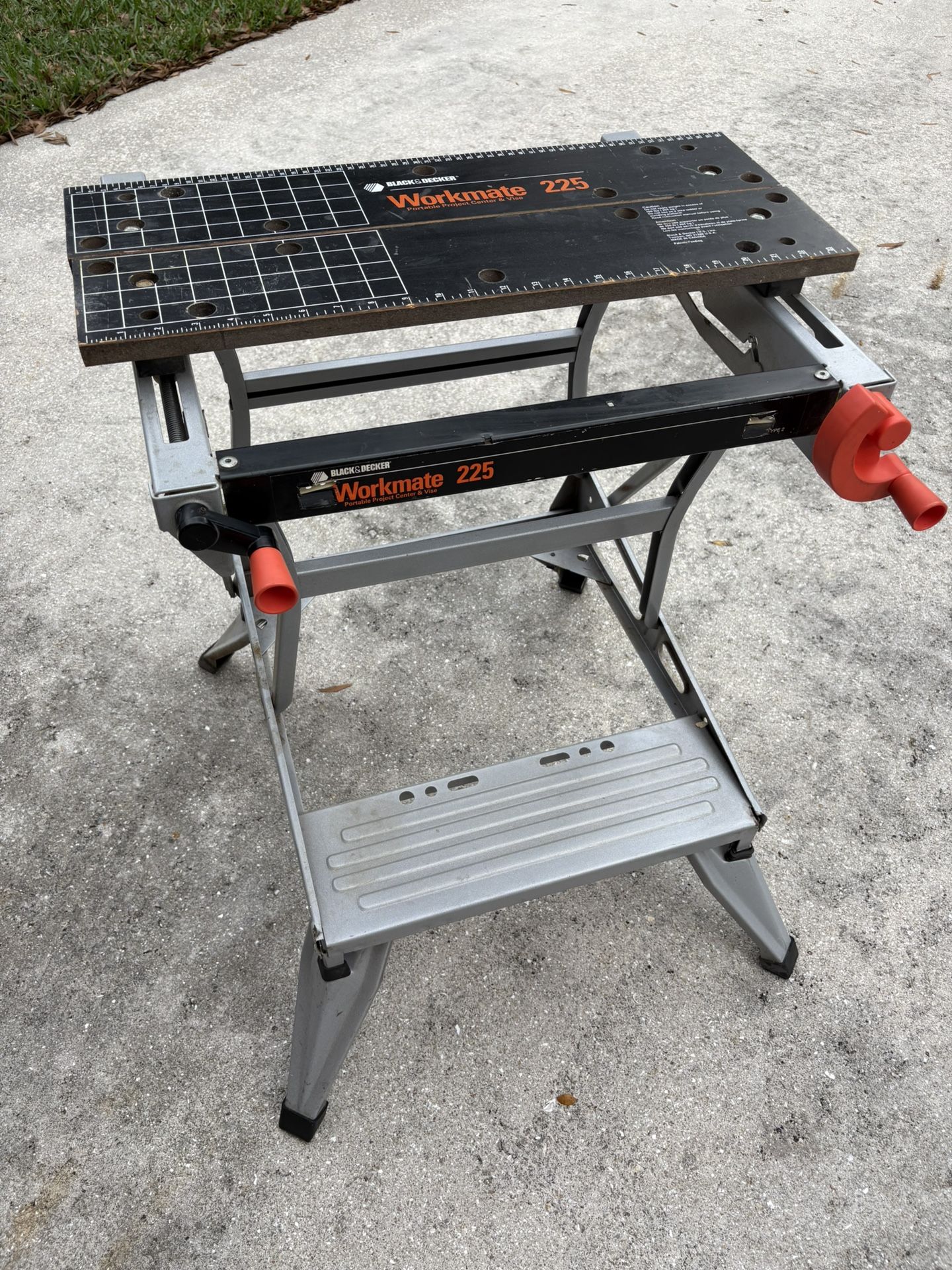 MULTIFUNCTIONAL DESIGN – Ideal for cutting, sawing, painting, and other projects that require a vise, sawhorse, and/or bench mm tool stand. HEAVY-GAUGE STEEL FRAME – Supports up to 450 lbs. DUAL-HEIGHT, ADJUSTABLE LEGS – Fold underneath the workbench to lower its height for larger projects. ADJUSTABLE REAR JAWS AND 4 SWIVEL PEGS – Warp-resistant jaws provide a unique gripping range and the ability to clamp mmmm irregularly shaped objects. PORTABLE, COLLAPSIBLE DESIGN – Lightweight, foldable workbench opens and closes in seconds, so you can store it anywhere or mm hang it up with other tools. Weight: 28 lbs. OPEN DIMENSIONS - 25.6 in. x 28.75 in. x 30.5 in. Why pay $75 plus when you can have this one for $35? CASH ONLY