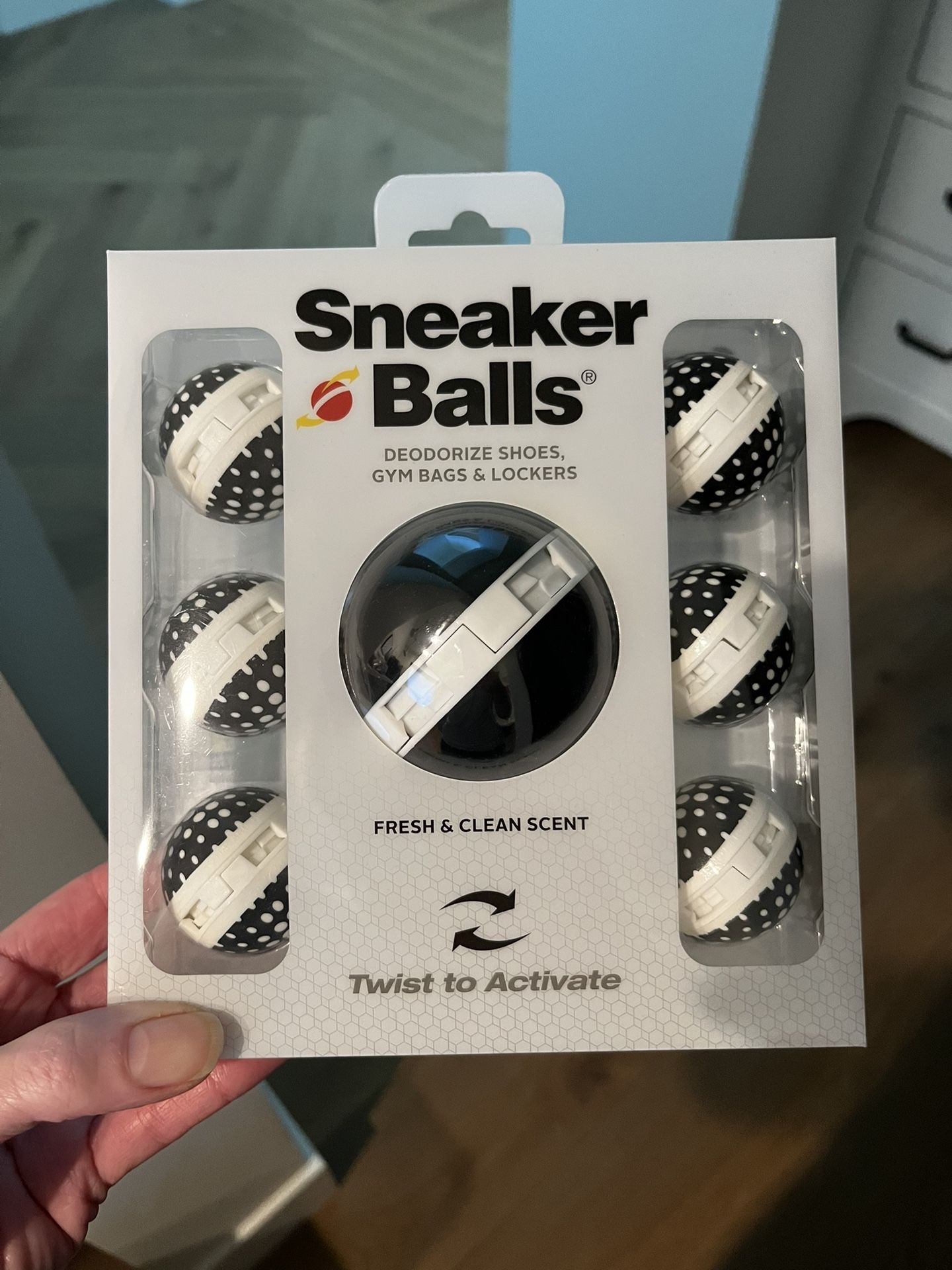 New Sneaker Balls to deodorize your shoes. Great for kids and athletes.