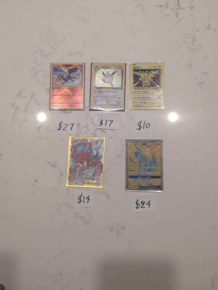 Rare pokemon cards with sleeves included. All cards are in great condition. You can buy all for $75 or each card individually.