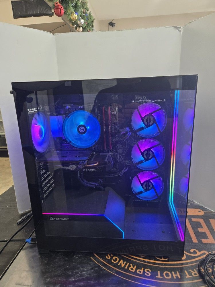 Nvidia rx 6600 xt graphics card, vulcan 16gb r, 1tb hardrive. Runs quietly and lights up in different colors. Comes with gaming keyboard and mouse. No monitor tower only with mouse and keyboard.