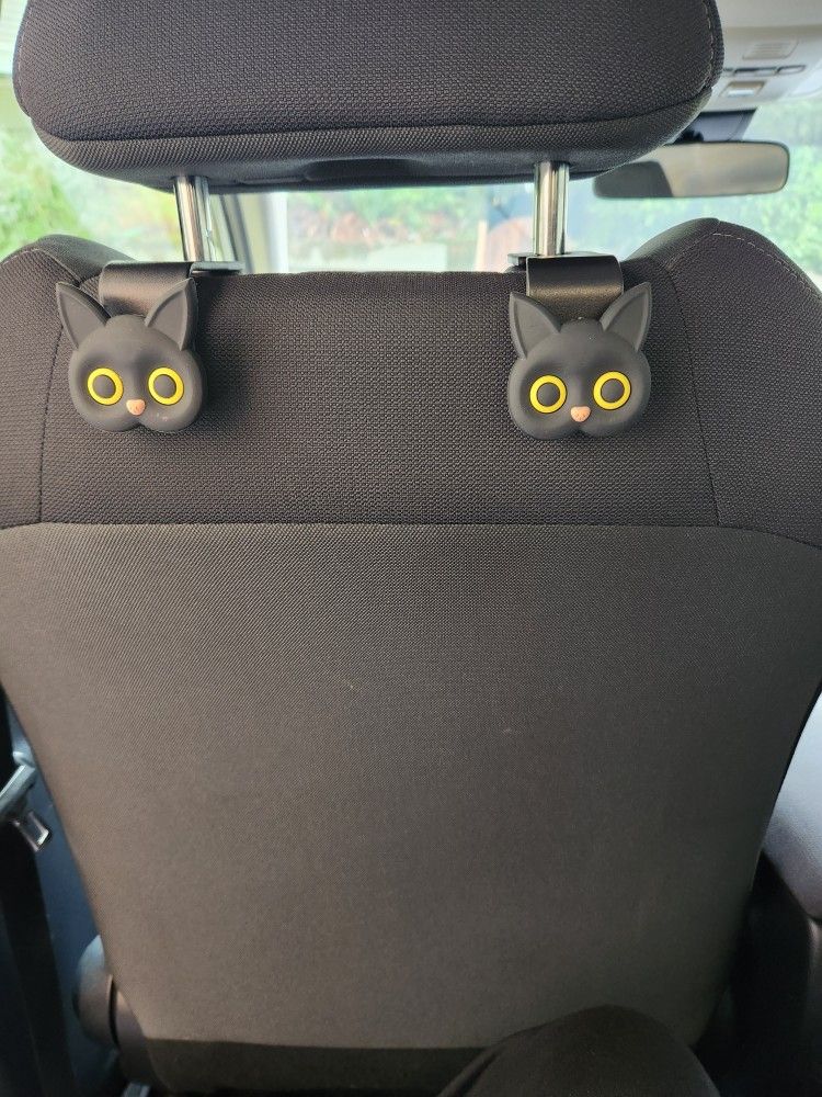 Cartoon cat car seat headrest hooks (black color). UNIVERSAL. Storage organizer for hand bags, purses, coats and etc. Set of 2. Easy to install. Pick up at Queen Anne, Seattle.