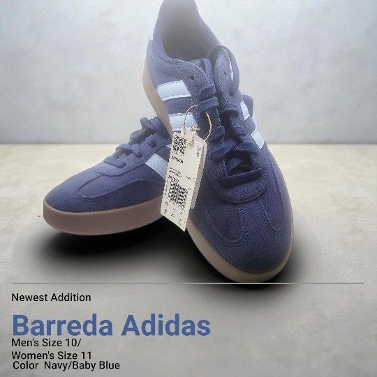 Navy base and baby-blue signature Adidas stripes. They are brand new, never worn, and come with their original tags. Note: Original box included; box shows minor cosmetic damage; however, the sneakers are in perfect condition. Retail Price: $80 Cyber Monday Sale