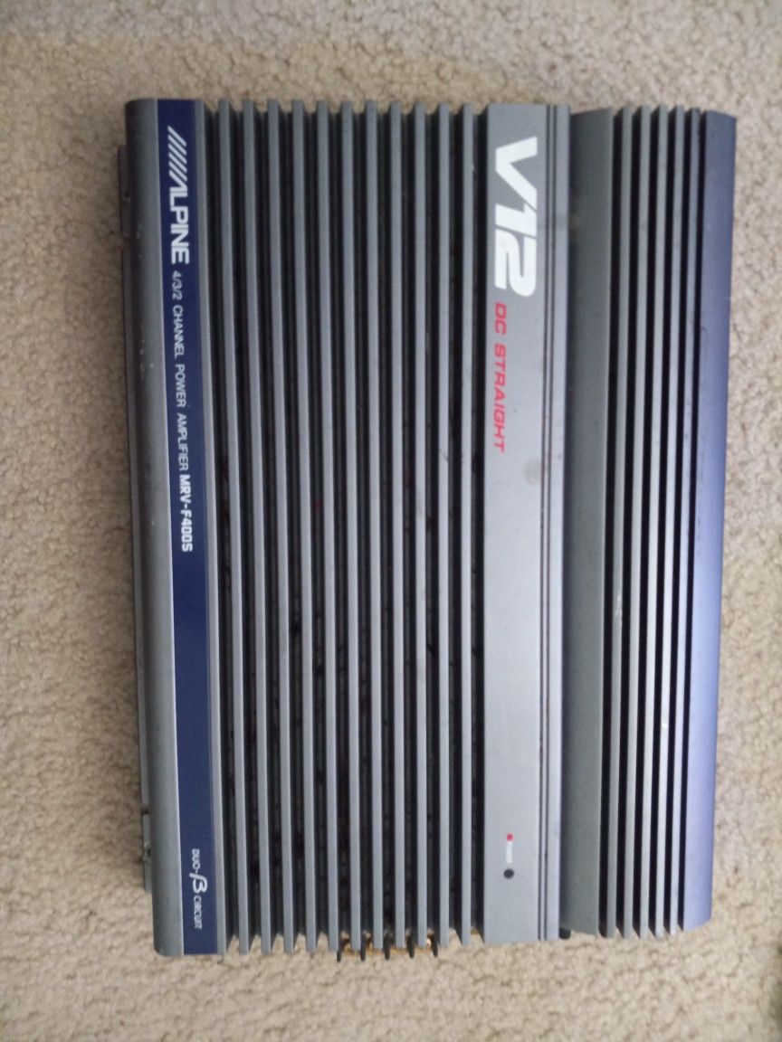 Alpine car amplifier wit a 4/3/2 channel option. Great for mids and highs or a complete system with subwoofer. Model mvr-f400. $100 firm Search words Mb quarts Jl audio Jl Alpine Mmats Tara Kicker Amp Amplifier Sub Subwoofer Speaker