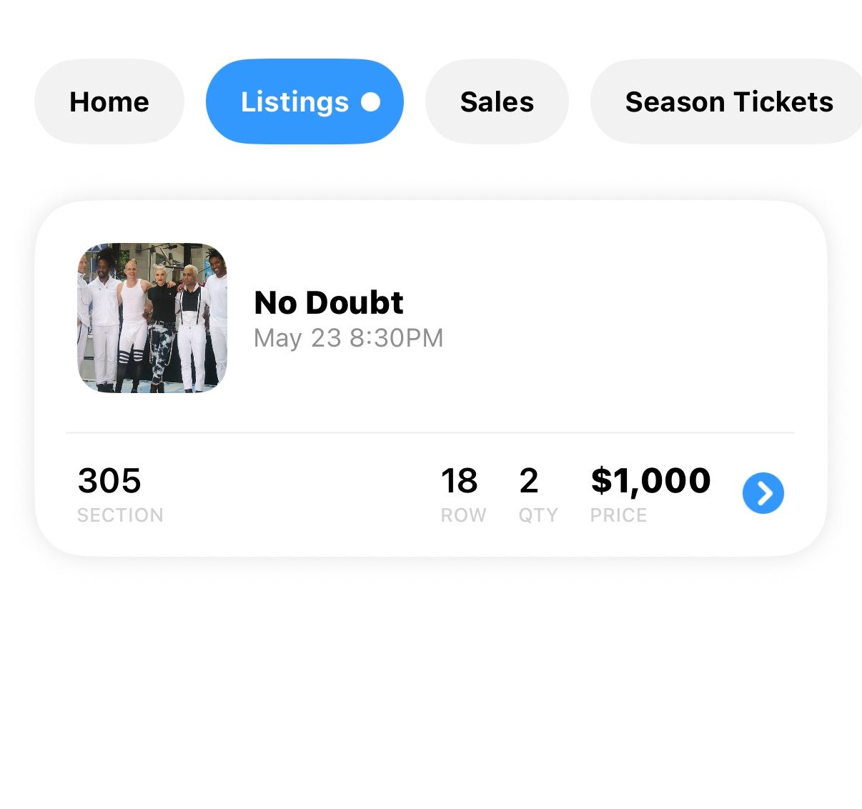 Check out my tickets for No Doubt! https://offerup.com/redirect/?o=aHR0cHM6Ly93d3cudGlja3BpY2suY29tL2J1eS10aWNrZXRzLzc0OTM3NDc/bWluZT00ODkzMDM1OTY5JmZyb21TaGFyZT1ZJnV0bV9zb3VyY2U9c2hhcmVMaW5rJnV0bV9tZWRpdW09YnV5UGFnZSZ1dG1fY2FtcGFpZ249c2hhcmVfbGlzdGluZw== $1000 per ticket. 2 available and sold together. Great seats