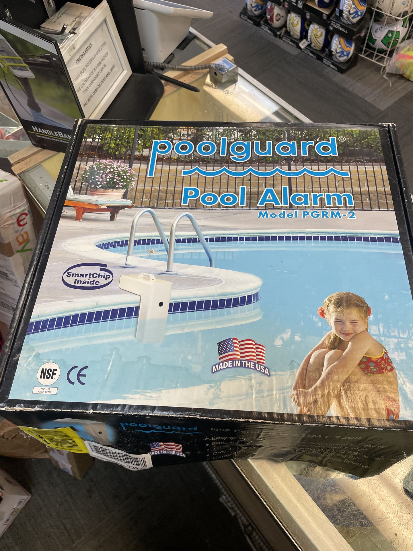 Located at play it again sports in Torrance The Poolguard In-ground Pool Alarm is an important product to ensure the safety of your pool. Remove the stress from your life about children, pets, or trespassers getting into the pool when you aren't looking. It is NSF and ASTM certified to guarantee your peace of mind when it comes to the security of the pool. The Pool Alarm includes new sensing technology that will decrease the chance of false alarms due to wind, rain or small objects like organic debris or toys falling into the pool. Create a stress free pool environment using the Poolguard In-ground Pool Alarm. Removal from the pool triggers an alarm Sleep Mode is used when pool is in use, put the alarm in sleep mode and remove from pool Automatic wake-up is triggered once alarm is placed in the water, and a system test is automatically performed Includes a in-house remote receiver with 200 ft reach, and 12v power supply Alarm operates on a 9v battery with an approximate year long battery life New sensing technology to limit false alarms Can detect intrusions as small as a one year old child