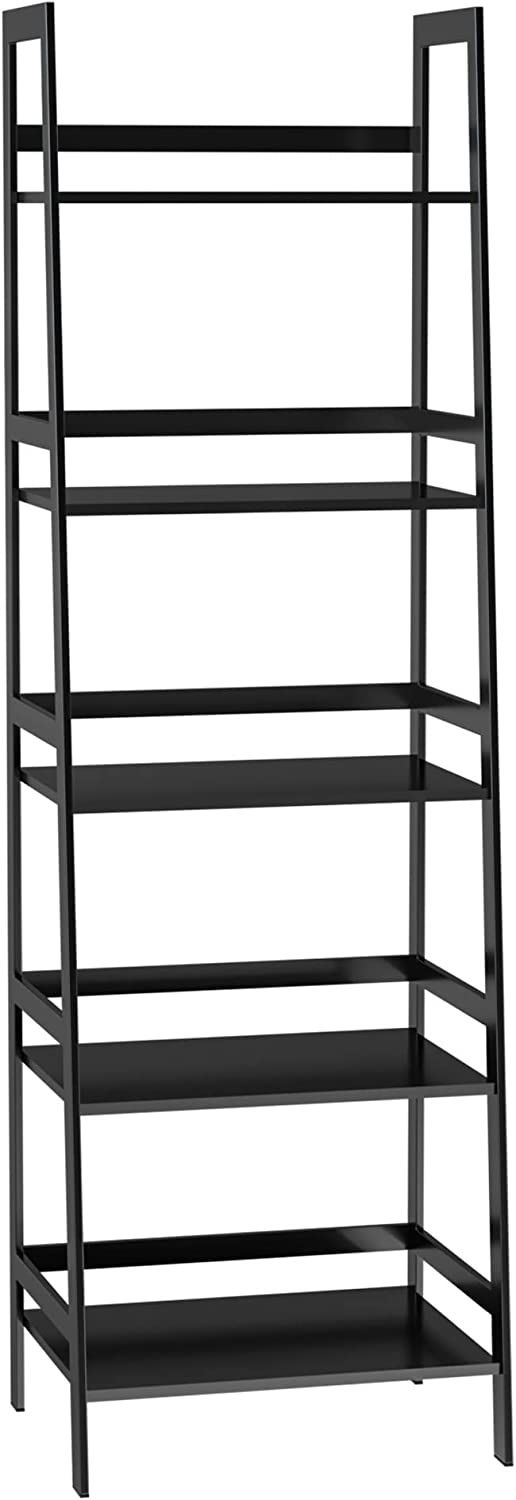 Ladder Shelf, 5 Tier Black Bookshelf, Modern Open Bookcase for Bedroom, Living Room, Office, MC-508 Black