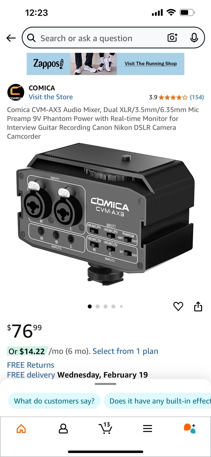 Comica CVM-AX3 Audio Mixer, Dual XLR/3.5mm/6.35mm Mic Preamp 9V Phantom Power with Real-time Monitor for Interview Guitar Recording Canon Nikon DSLR C