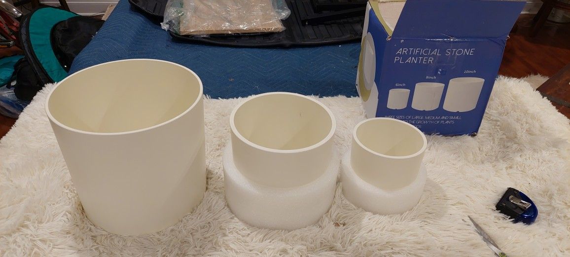 Artificial Stone Planters 6in, 8in and 10in. Brand-new still in box. Pick up in Plainfield il