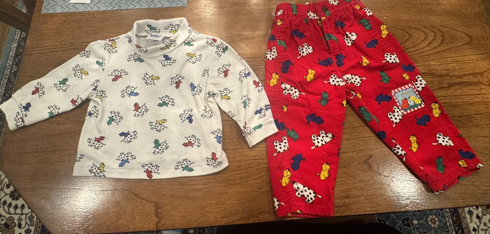 Vintage Oshkosh matching Dog Print white shirt and Red corduroy pants-Size 24 months for both