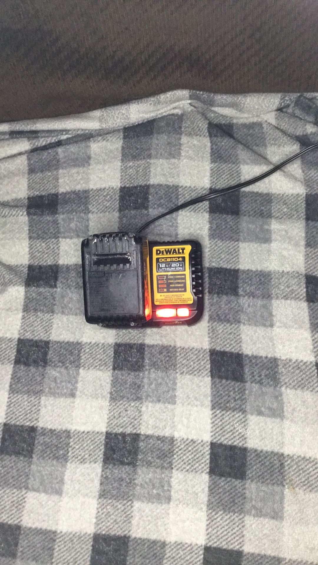 BATTERY CHARGER - Compatibility DEWALT Compatible models DeWalt DCB1104 Volts 12 V Power type Corded Electric Features LED Indicator Accessories No Brand DEWALT Has written warranty No Model name DCB1104 Model DCB1104-NBX Works with DeWalt 12V and 20V batteries Height 2.75 in Retail packaging Single Piece BATTERY BrandDEWALTBattery Capacity5 AhBattery Capacity Range4.0 Ah - 6.0 Ah; 7.0 Ah - 9.0+ AhBattery ChemistryLi-IonBattery Series20V MAX*Charger Manufacturer Part NumberNoCompatible Manufacturer Part NumberDEWALT ToolsCompatible Product TypeDEWALT® 20V Cordless ToolsCordless Tool Battery Platform20V MAX*Features3-Led Fuel Gauge System; No Memory And Virtually No Self-DischargeManufacturer Part NumberDCB205Number of Batteries Included1Number of Chargers Included0Oil ResistanceNot Oil-ResistantProduct TypeBatteryTool Series20V MAX*Voltage20V DCWireless Tool TrackingNoUNSPSC(contact info removed)0Country of OriginSouth Korea (subject to change) Product Description These tool batteries power DEWALT cordless tools of a compatible platform and matching voltage. $90 or best offer