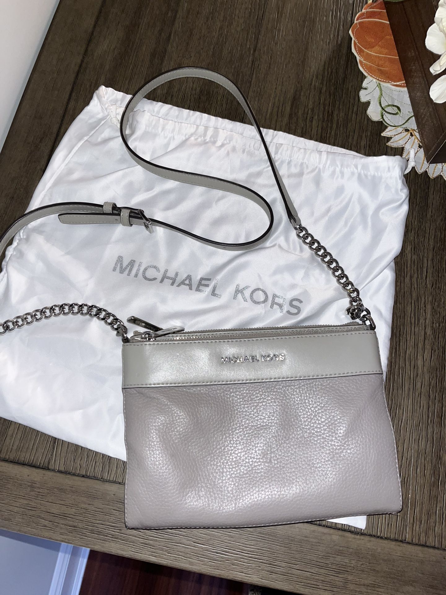 Michael kors Kenly Large Pebbled Leather Crossbody Bag In Grey. Mint condition. (Only asking 45$ FIRM!! ) (SERIOUS BUYERS ONLY MESSAGE ME!) Thank you.