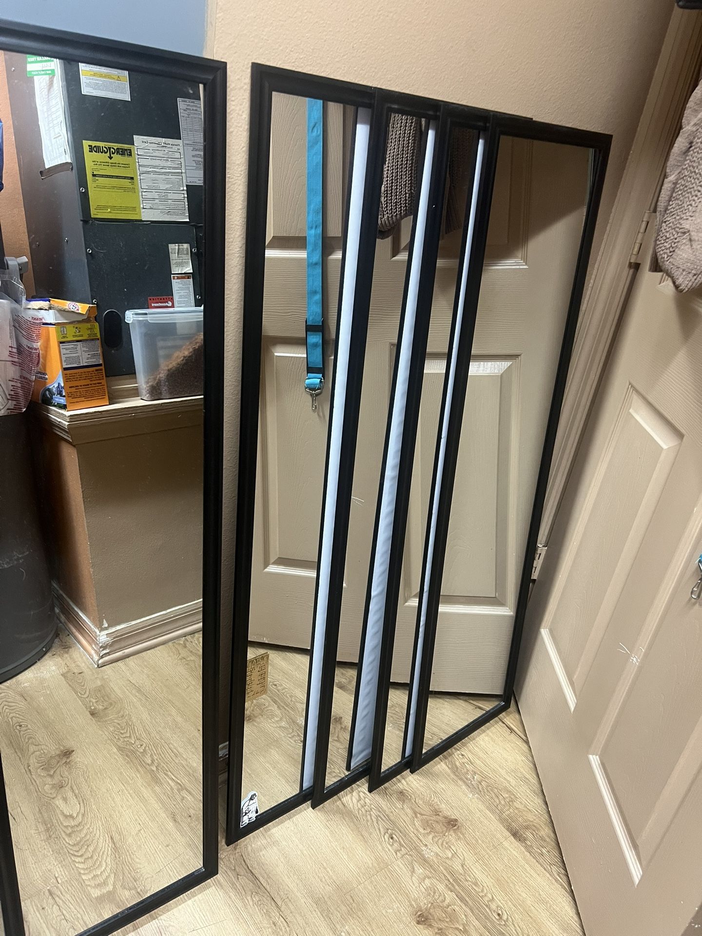 All black Mainstays 13x49 Black Rectangle Large Wall Mirror for Bathroom or Living Room