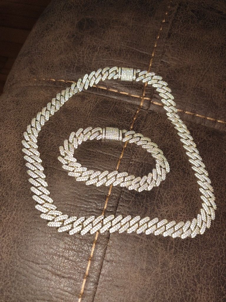 READ CAREFULLY : TITANIUM silver 20 inch iced chain with matching bracelet. Bought at the Mall for $400. Now collecting dust on my dresser. Tarnish resistant. Check out my profile Bensenville IL Pick up only