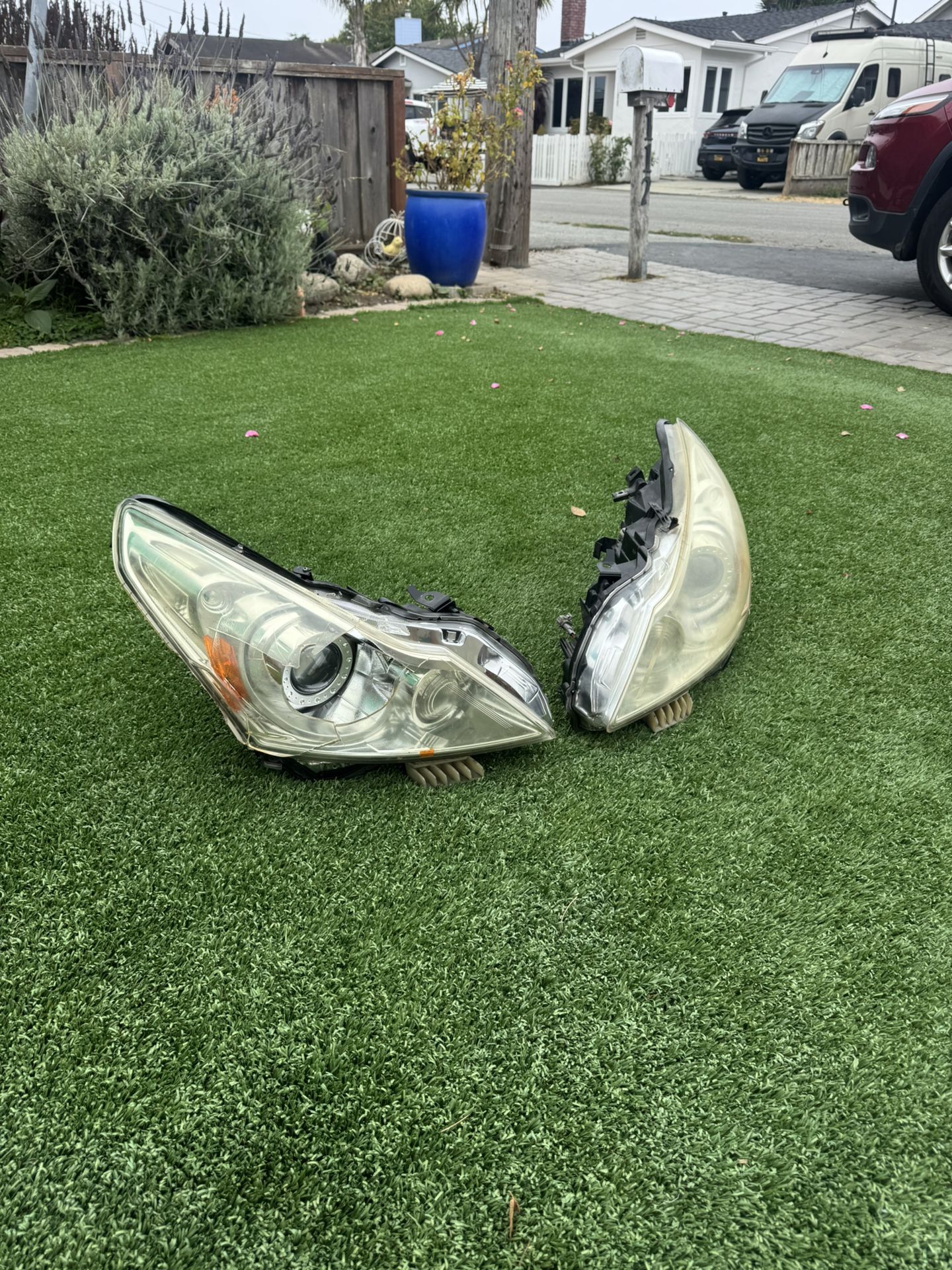 G37 headlights came right off a 2010 will fit any 2007+ years only reason for selling is because I upgraded too spec d headlights and passenger headlight is cracked right is good condition no problems both lights still work just crack takes these off my hands for 120 you see the market people be taxing