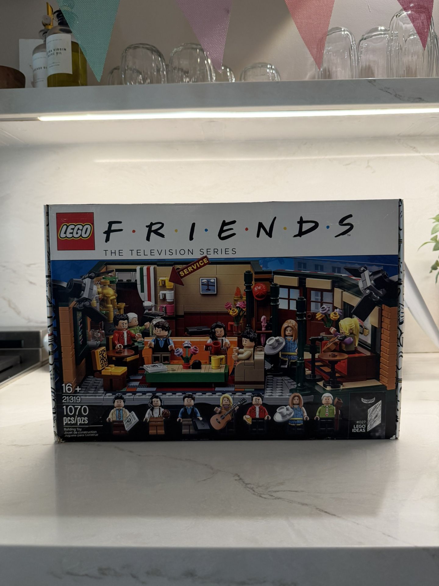LEGO Ideas Central Perk set from the Friends television series. This 1070-piece set recreates the iconic coffee shop from the show with detailed seating, stage area, and filming set design. Includes 7 minifigures: Rachel, Ross, Monica, Joey, Chandler, Phoebe, and Gunther. Perfect for LEGO collectors or fans of the Friends TV series. • Set number: 21319 • Pieces: 1070 • Includes 7 minifigures • Recommended age: 16+ • Condition: New in box Great display piece and a fun build for any Friends fan. Pickup preferred.