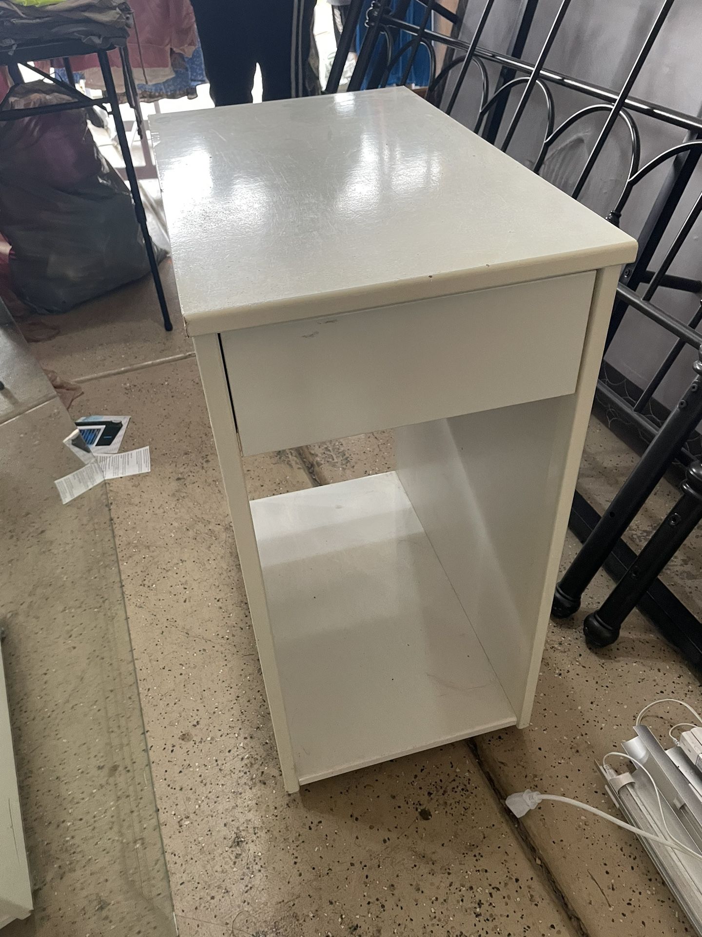 White rolling shelf with drawer 14x29