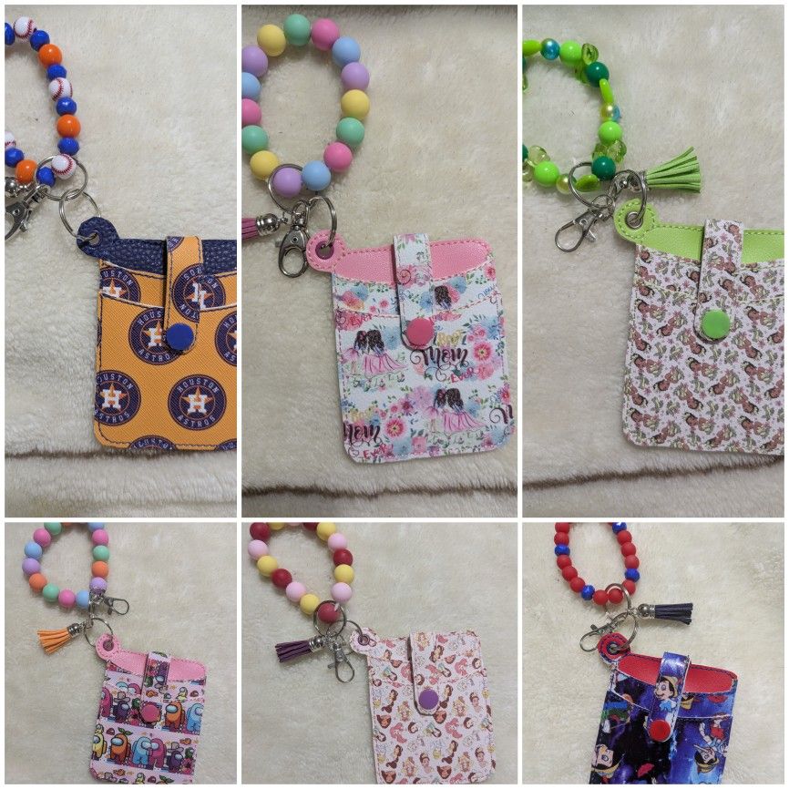 Handmade card holder and wristlet. Faux leather, acrylic and silicone beads, elastic wristlet. Price is per wristlet.