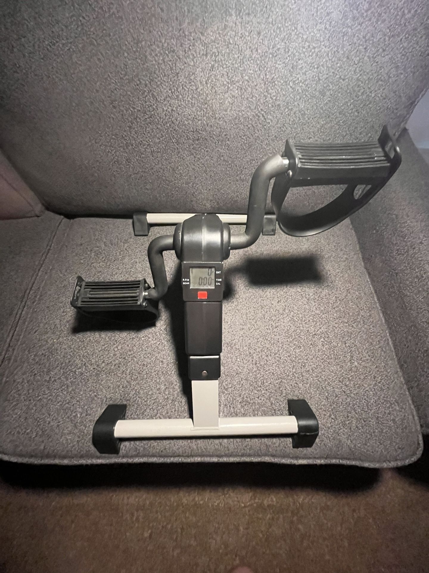 Barely used mini pedal exerciser in excellent condition. Only used about 5 times and has been stored away since. Works perfectly. Great for light exercise, physical therapy, or staying active while sitting at a desk or on the couch. Can be used for both arms and legs. Compact and easy to store. Features: • Digital display (time, count, RPM, calories) • Adjustable resistance • Non-slip pedals • Sturdy, stable frame • Lightweight and portable No damage, no issues — basically brand new.