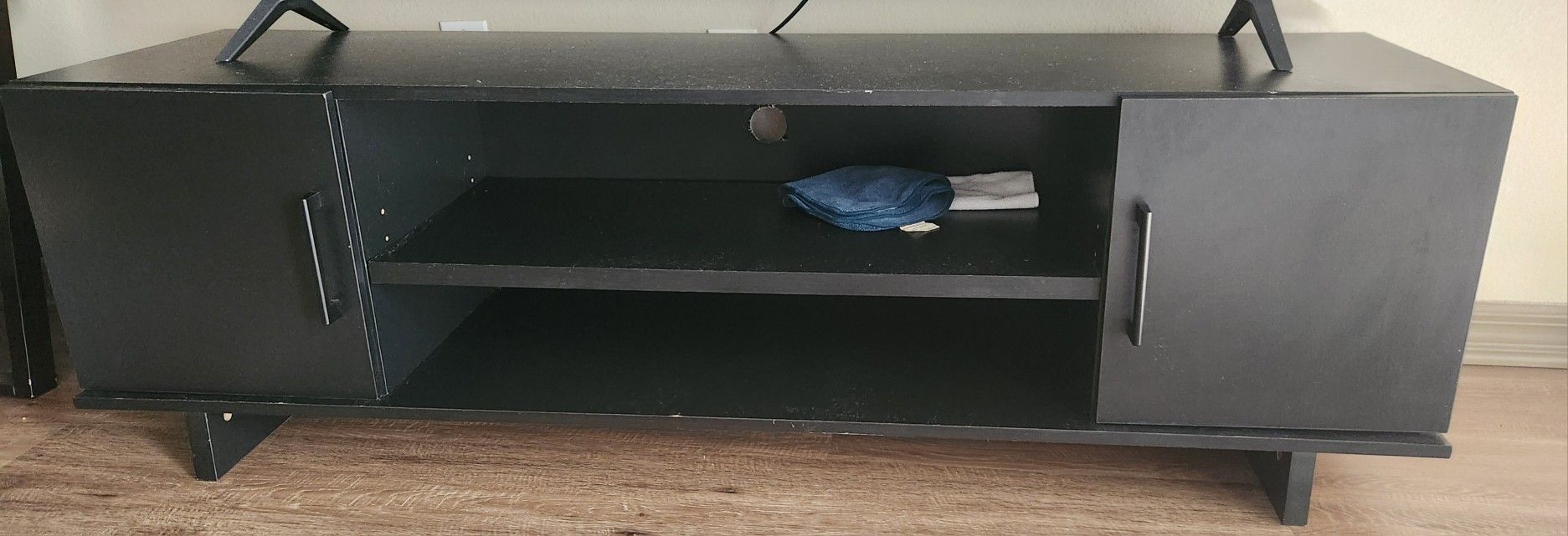 60 inches in length and 20 inches in height, this TV unit easily fits up to a 52-inch TV. Features ample storage space for media, books, or decor, making it perfect for your living room or bedroom. Lightweight yet durable, it offers both style and functionality with plenty of room for cable management and additional storage. Looks like new Cash only Pick up only