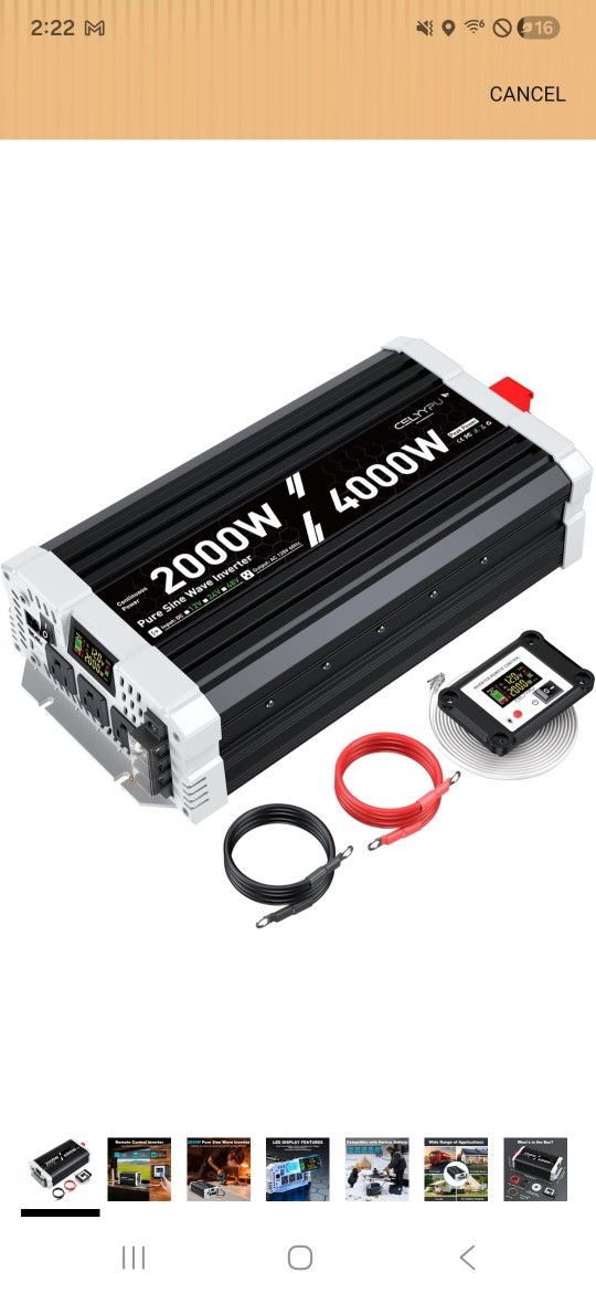 2000 watt Pure sine Wave Inverter, 12V DC to 110V AC Power Inverter, with 3 AC Output sockets, USB Port, Type-C Port, Remote Control with LCD Screen, Used for Solar Emergency Power Supply in RV Homes $$$110 New