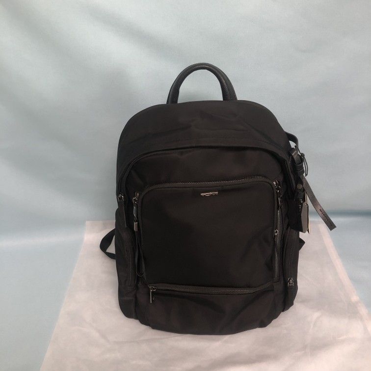 Totally new. Never worn Dimensions 16.0" X 10.6" X 6.5" Laptop Size:fits up to 15" Primary Material:Nylon Exterior Double-zip entry to main compartment Zip entry to padded laptop compartment (fits up to a 15” PC or 16” MacBook screen) Leather top handle Front U-zip pocket 2 front zip pockets Front zip entry to main compartment Side zip pocket Side double-zip water-resistant water bottle pocket Interior Zip pocket 2 media pockets Leather card pocket Open pocket Leather pen loop Key leash